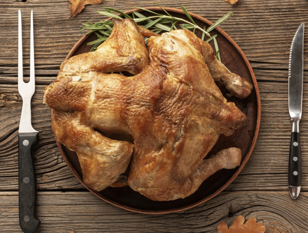 Voeg deze heerlijke hele gegaarde kip eenvoudig toe aan je bestelling en proef het verschil!